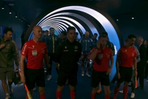 西班牙人球员赛前带着11只待领养的狗狗踏上球场,为狗狗寻找负责人的收养者。