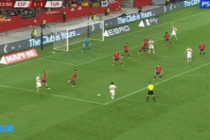 比赛第54分钟,厄兹詹禁区外远射直入死角,为土耳其反超比分,2-1西班牙!