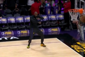 全员笑开花!詹姆斯助攻文森特压哨三分!